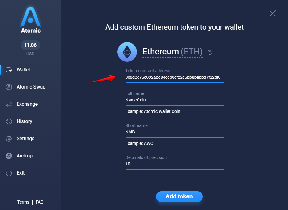 All other information will be filled automatically. Now you have your Custom Token in Atomic Wallet.